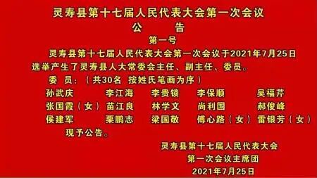 7月25日9点整,灵寿县第十七届人民代表大会第一次会议举行第三次全体会议。会议由大会主席团常务主席、执行主席彭勇民主持。大会执行主席:尹国亮、高梁、王辉、刘祥平、闫二庆、孙伟敏、梁国敬、尚利国、李江海、曹习军、罗国良、 张风岗 、胡延卫及其他主席团成员在主席台就坐。会议以举手表决的方式通过了总监票人、监票人名单。以无记名投票的方式,选举了县十七届人大常委会主任、副主任、委员,县人民政府县长、副县长,县监察委员会主任,县人民法院院长,县人民检察院检察长,灵寿县出席市第十五届人代会代表。