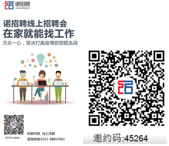 由中共石家庄市委组织部、石家庄市人力资源和社会保障局主办河北诺亚人力协办的“春暖花开 石等你来”石家庄高层次人才云端招聘会汇集了河北省内上千家企业共同参与,众多知名企业,如五十四所、十三所、中国移动、中国联通、君乐宝、伊利、以岭药业、华药、四药、国有银行、北人集团、教育行业等各行业的高端优质岗位。助力企业招聘,全面提升人力资源市场就业率。同时正值高校毕业生毕业季,为了给广大芊芊学子提供更广阔的就业平台,提供更多更优质的就业岗位。“春暖花开 石等你来”石家庄高层次人才云端招聘会正在河北诺亚人力“诺招聘“平台火热进行中,千余家企业招贤纳士、优质岗位7000多个。